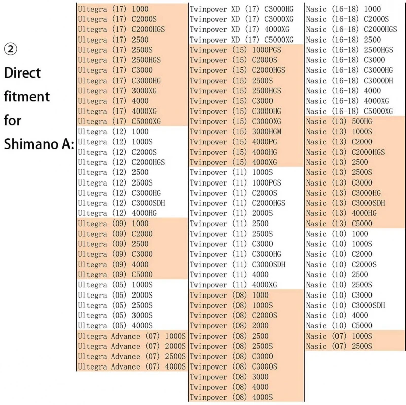Directe pasvorm voor Shimano Spinning reel Handle A: (16) Stradic CI4+ 1000 – 4000?(06) Sephia 2500, (09) Sephia 3000, (08) (10) (12) (17) Sephia CI4+ 3000, (07) Sephia BB 2500,(10) (11) (13) (18) Sephia BB 3000
