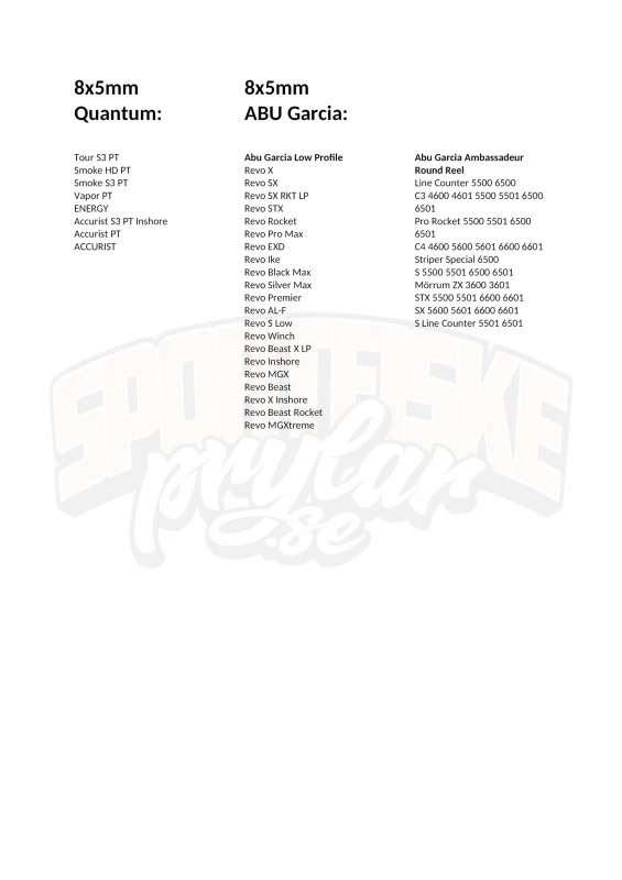 Line Counter 5500 6500, C3 4600 4601 5500 5501 6500 6501, Pro Rocket 5500 5501 6500 6501, C4 4600 5600 5601 6600 6601, Striper Special 6500, S 5500 5501 6500 6501, Mörrum ZX 3600 3601, STX 5500 5501 6600 6601, SX 5600 5601 6600 6601, S Line Counter 5501 6501.