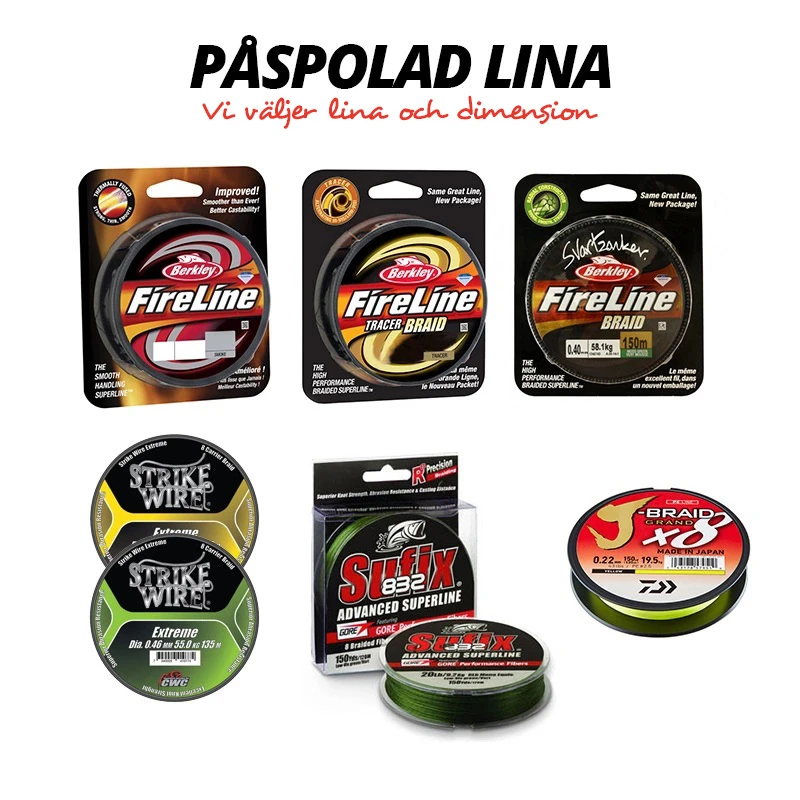 Wij kiezen de lijn die het beste werkt voor de reel die u gebruikt, zodat u zich geen zorgen hoeft te maken over welke lijn u moet gebruiken enz.