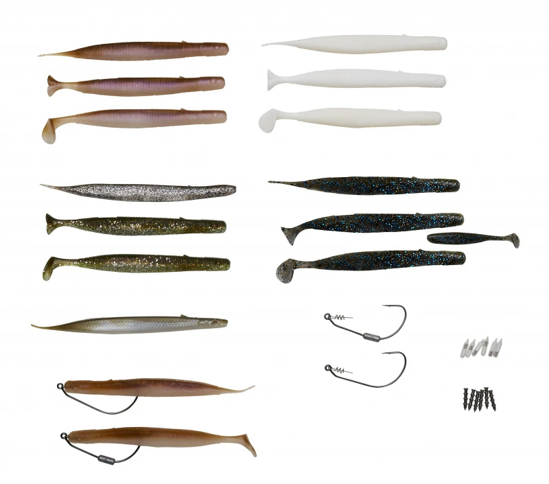 Savage Gear Gravity Stick Kit 30+17st. Een slank geprofileerd, lang werpend assortiment zacht kunstaas met een hoog soortelijk gewicht.